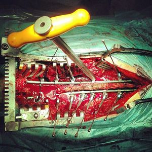 Spinal surgery in process