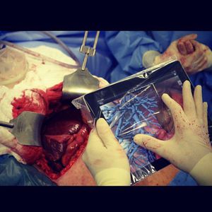 A German surgeon has used an iPad with augmented reality software running on it to assist in a liver operation. The iPad camera was used to photograph the liver, while the iPad app overlayed a virtual 3D model of the pre-op plan.The app is enabling the surgeon to make the cuts in precisely the right places to minimize blood loss. This is how it looks in real time 😷