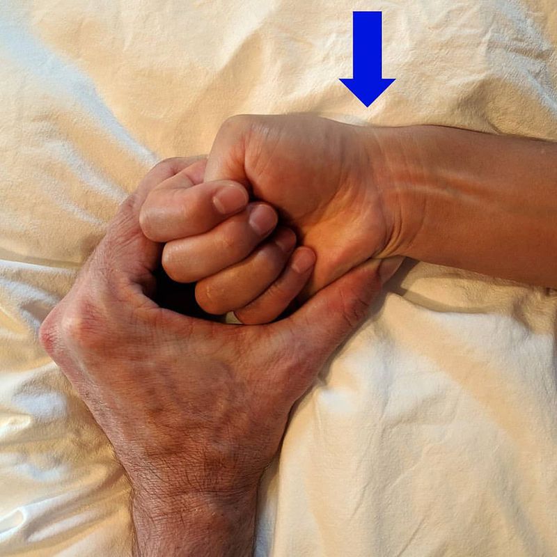 De Quervain syndrome is inflammation of two tendons that control movement of the thumb and their tendon sheath. This results in pain at the outside of the wrist. Pain is typically increased with gripping or rotating the wrist. The thumb may also be difficult to move smoothly.Onset of symptoms is gradual. In the image you see the modified Eichoff maneuver, commonly called the Finkelstein's test. The arrow mark indicates where the pain is worsened in de Quervain syndrome Treatment involves avoiding activities that bring on the symptoms, pain medications such as NSAIDs, and splinting the thumb. If this is not effective steroid injections or surgery may be recommended