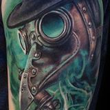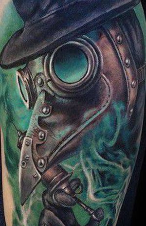 Plague - The Black Death was born from an evolution of the bacterium Yersinia Pestis.it is the most devastating pandemic in the history of humanity, which affected the whole of Europe killing 60% of Europeans, died 50 million people of a total of 80 million inhabitants.A plague doctor was a medical physician who treated victims of the plague.The protective suit consisted of a heavy, waxed fabric overcoat, a mask with glass eye openings and a beak shaped nose, typically stuffed with herbs, straw, and spices. Plague doctors would also commonly carry a cane to examine patients without the need to make direct contact with them. The masks were designed to protect them from putrid air, which was seen as the cause of infection.