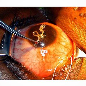 Loa loa is a blood dwelling nematode that is parasitic in humans. The adult worm wanders through the subcutaneous tissue but is most obvious as it crosses the conjunctiva of the eye hence leading to its common name, the African eye worm. Like all roundworms, Loa loa is sexual so a male and female worm must be present in the same host for a full infection to ensue.