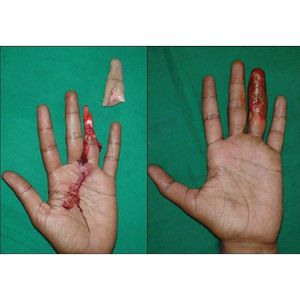 Degloving injury of the ring finger with subsequent removal of the underlying tissue
