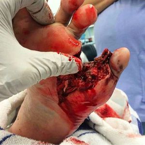 Such traumatic foot injuries are common when the patient is involved in a motor vehicle accident, work-related or when he does a silly act to prove a point. The foot was able to be saved after an emergency reconstructive surgical intervention with the team reattaching the different components back to place.