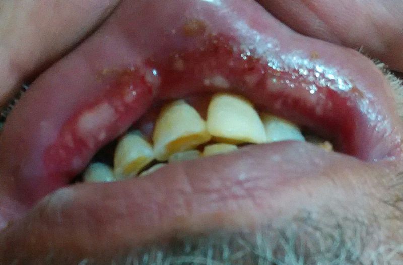 White red lesions on inside lips and sides of mouth with itching What is this and its treatment