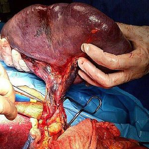 Splenectomy (surgical removal of the spleen) performed in a patient with a massive splenomegaly