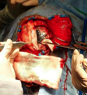 Here's the brain partially exposed by the neurosurgeon to reveal a melanoma (the black spot at the center)! This advanced IV stage malignant melanoma metastasized and found its way up to the brain, which is one of the most common and difficult-to-treat complications of the aggressive disease. Most of the symptoms of CNS melanoma metastases are unspecific and depend on localization of the lesion. CT and MRI among others are used in order to define the characteristics of the lesions and to embase the surgical plan. Treatment depends on each situation, surgery, radiosurgery, whole brain radiotherapy and chemotherapy are used in combination to obtain longer remissions and optimal symptom relieve. Surgical resection of an isolated metastasis (seen above) can lead to a long survival but brain lesions are frequently numerous and associated with an extracerebral diffusion, which may require combination of other treatment options.