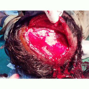 Severe injury to the scalp following an assault, taken in casualty right before the wound was about to be sutured. In Sacred Heart Hospital.