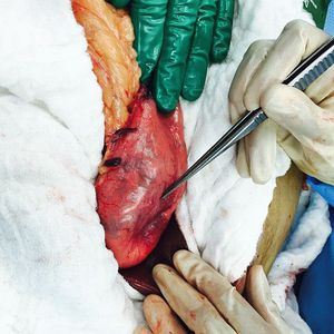 A typical picture of GIST (Gastrointestinal Stromal Tumor) from a patient that went through a subtotal gastrectomy. GISTs are pretty common mesenchymal neoplasms of the GI tract. They are tumors of the connective tissue, which means that they are non-epithelial in origin, and are associated with several genetic mutations such as c-KIT mutations in more than 80% of the cases. The patient might have GI bleeding, trouble swallowing, intestinal obstruction and metastases to the adjacent organs (mainly to the liver). Surgical resection is the primary treatment of choice when a resectable GIST is present, although medications can be useful as well. Photo by @3odaay