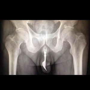 This happened as a result of a strange and unlucky sexual accident. He arrived to the hospital and presented with bleeding from the area. The fork was not visible but doctors were able to feel it from the outside and X-rays showed its position.You ask why? He told he had inserted the 10cm dining fork into his urethra almost 12 hours earlier in an attempt to achieve sexual gratification.The doctors removed the item without any surgical intervention, in order to minimise urothelial trauma and preserve erectile function.