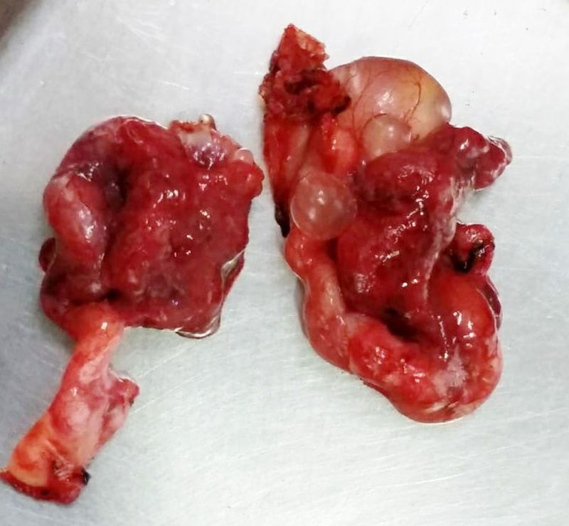 Ms. S having a paratubal cysts. She is having lower abdominal pain, a weekness,. After ultrasonography diagnose with Uterine fibroids with para tubal cysts. She having anterior posterior wall of fibroids. After the diagnosis surgery has planned. laparoscopy a surgery of total hysterectomy was done.