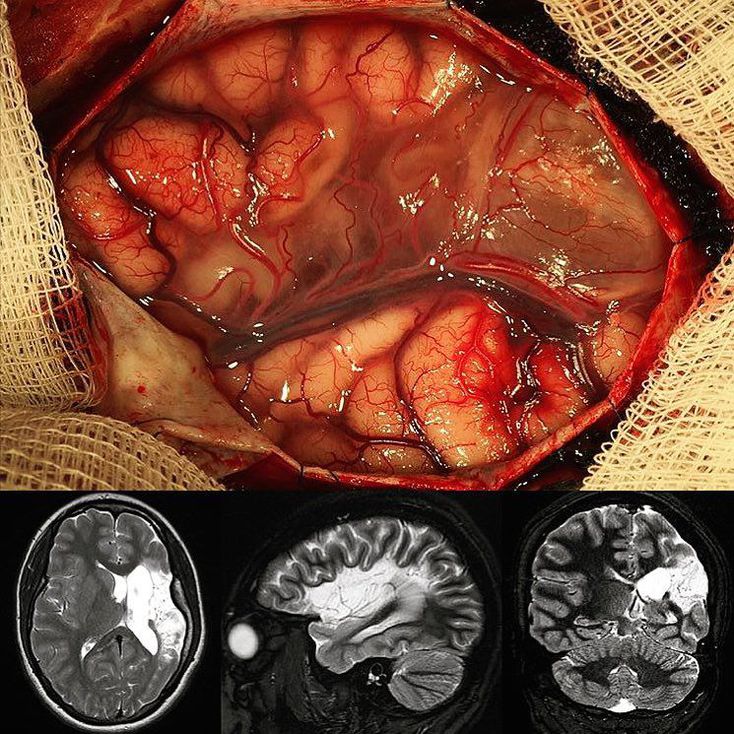Here's a case of a 17 year old female patient that had a perinatal intracerebral hemorrhage, strictly means a pathologic accumulation of blood within the cranial vault. She then started having epileptic seizures at the age of 7.Over time they got worse and became refractory to medication in the last months. Imaging studies revealed a localized area of cerebral softening (encephalomalacia) which developed as a complication of the intracerebral hemorrhage. Neurosurgeons were able to resect the encephalomalacia in the perisylvian area which was causing the seizures. Below are the axial, sagittal, and coronal views of her MRI scan. Credit to @rpaglioli