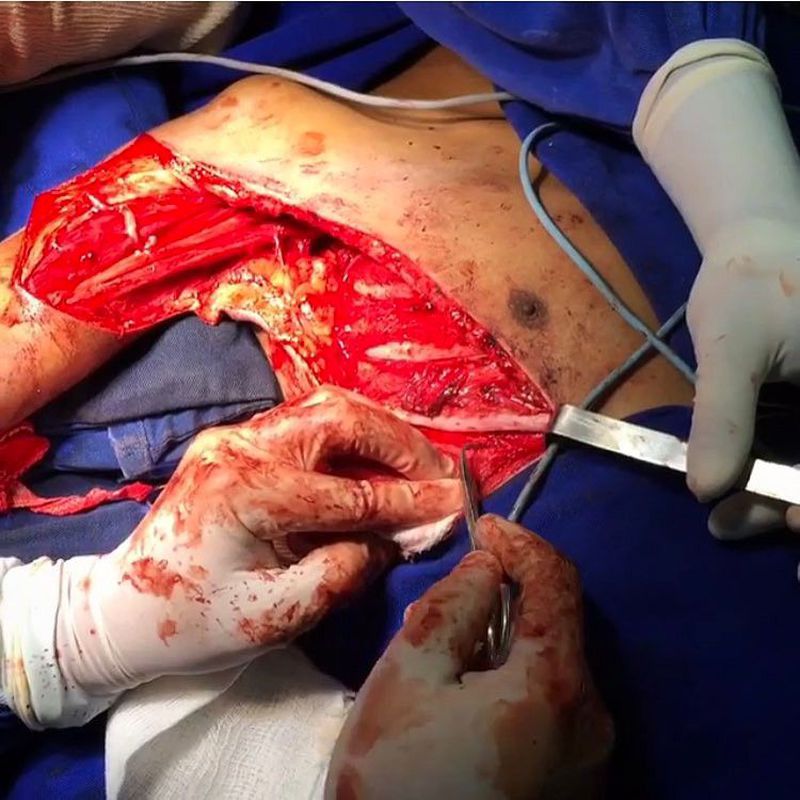 Brachial plexus root avulsion injuries, seen in the above image, can be devastating. They usually result from high-speed accidents. Nerve transfer provides hope for successful treatment of this difficult set of injuries. In neurotization (nerve transfer), a healthy but less valuable nerve or its proximal stump is transferred in order to reinnervate a more important sensory or motor territory that has lost its innervation through irreparable damage to its nerve. In brachial plexus injuries, extraplexal nerves such as the spinal accessory nerve, branches of the cervical plexus, or intercostal nerves are transferred onto trunks, cords, or individual nerves or else segments of the brachial plexus that maintain continuity with the spinal cord may be coapted to trunks or cords the surgeon wishes to innervate. This method is indicated in root avulsion injuries that occur frequently following traction trauma to the brachial plexus, causing paralysis of muscles.