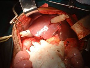 Damage control procedure. The balloon is constucted of a penrose drain sutured to a foley catheter. Image at time of laparotomy.Credit: trauma.org