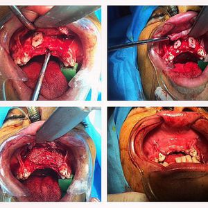 General knowledge: Maxillary augmentation denotes the genre of reconstructive surgeries that aims the correction of maxillary hypoplasia. Maxillary hypoplasia results from the underdevelopment of the maxillary bones and produces midfacial retrusion, creating the illusion of protuberance of the lower jaw. As a result the profile appears prognathic.Maxillary hypoplasia can affect different subunits of the maxillary bone. If the entire maxilla is hypoplastic, it is termed maxillary micrognathia, while premaxillary hypoplasia refers to the part of the maxillary bone between the lateral maxillary incisor fissures.Craniofacial anomalies, Apert syndrome, and Crouzon syndrome include maxillary and cranial hypoplasia.Sent by maxillofacial surgeon @nima__sadeghi ,with permission of the patient.