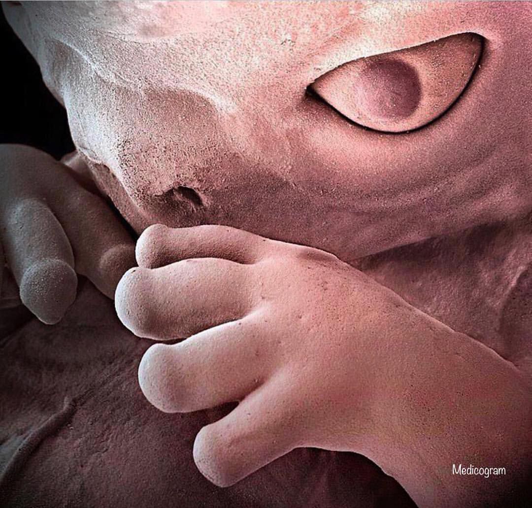 The fetuses eyes are interesting! According to some scientists they believe eyes evolved around 500 million years ago. They are an example of convergent evolution and evolved several different times. Insects have different eye structures than camera type eyes that humans have. Just an interesting tidbit to share. (Sorry I don't have a citation for the information)