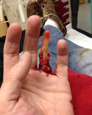 A degloving injury is a type of avulsion in which an extensive section of skin is completely torn off the underlying tissue, severing its blood supply. It is named by analogy to the process of removing a glove. Degloving injuries invariably require major surgical interventions. Treatment options include replantation or revascularization of the degloved skins, or when these are not possible, skin grafts or skin flaps. While the preservation of the extremities and limbs is normally preferred, in some cases amputations may be advised or required.