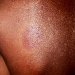 Punch out lesion on leprosy patient