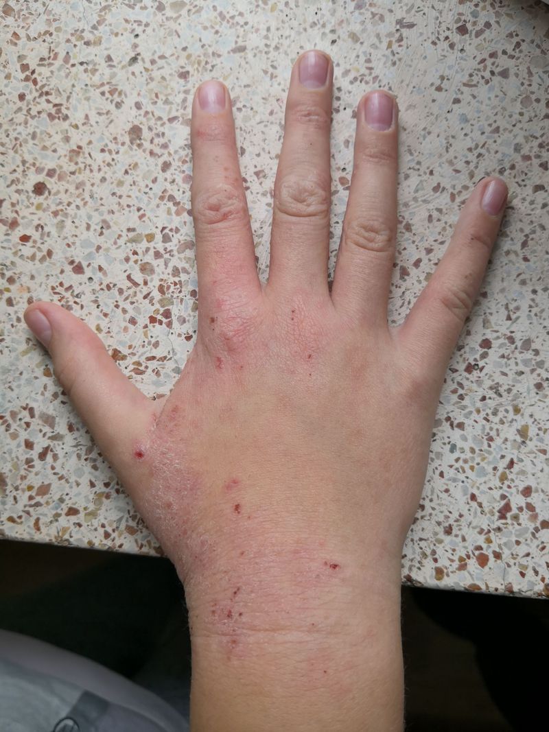 It's look like a eczema or scabies? Try for both Topical neomycin with corticosteroid cream, and tablet ivermectin 6mg stat.