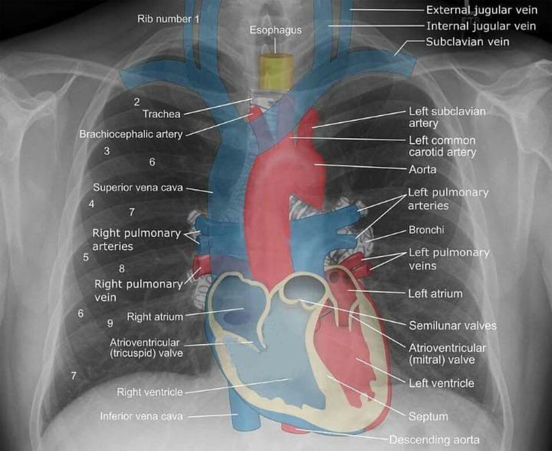 Showing the heart and lungs position in x-ray