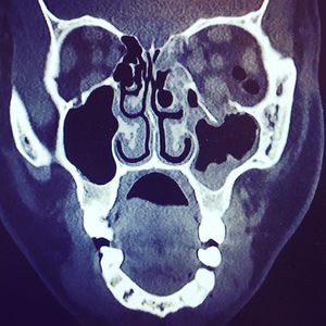Can you spot the fracture? 😵🤕👁 Orbital floor fracture from a faceplant 😦😞 The floor of the orbit is the facial bone that holds your eye in place. Fracturing it leads to eye drooping, herniation of periorbital fat into the maxillary sinus, and even entrapment of the inferior rectus muscle, a surgical #emergency. Fortunately this trauma can be repaired with #surgery ! ☺️👌💪