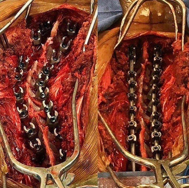 Scoliosis is a lateral curvature of the spine that occurs most often during accelerated growth just before puberty. While scoliosis can be caused by conditions such as cerebral palsy and muscular dystrophy. Most cases are idiopathic. The curve is usually in the form of "S" or "C". In some, the degree of curve is stable, while in others it increases with time. Mild scoliosis usually does not cause problems, while severe cases can interfere with breathing. The diagnosis is usually confirmed with simple x-rays. Surgical correction is performed in severe cases and generally involves the use of modern instrumentation systems in which hooks and screws are applied to the spine to anchor long rods, which guarantees the correction of the curvature and its stability over time.