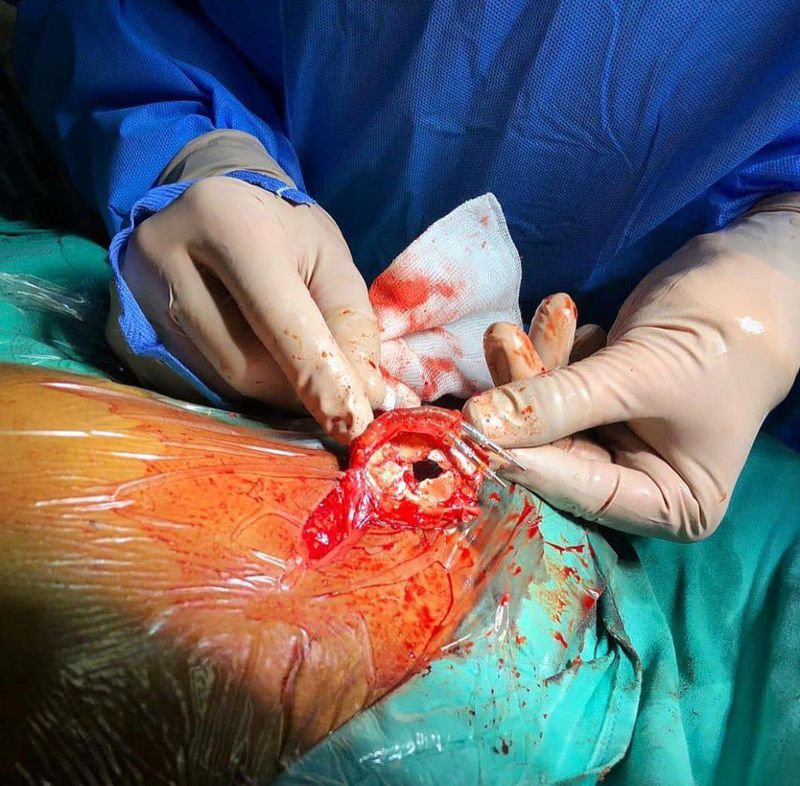 This patient underwent a routine cardiac pacemaker box change after their current pacemaker reached its relative replacement time. Upon extraction of the old pacemaker, large calcifications were discovered around the pacemaker leads. Many people have surgically implanted cardiac devices. These devices include pacemakers and implantable cardioverter defibrillators or ICDs. Pacemakers can help treat slow heart rhythms, and ICDs stop dangerous rapid heart rhythms. Both these devices have 2 main components: a pulse generator and a set of leads. The pulse generator is a small computer with electric circuits and a battery. The leads are wires that run between the pulse generator and the heart. These leads can deliver a burst of energy in both pacemakers and ICDs. This burst of energy can cause the heart to beat more quickly (in a pacemaker), or it can stop dangerous rapid heart rhythms (in an ICD). To do this, the leads need to contact the heart itself. Most leads travel through a vein to enter the right side of the heart. They usually connect to the inside of the heart with a small screw screwed directly into the muscle of the heart wall. In our case, the pacemaker leads were surrounded with encapsulating connective tissue, and calcification was present. The patient underwent a successful pacemaker lead extraction.