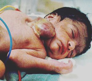 The congenital disorder in which heart lies out side the thorax of a baby.