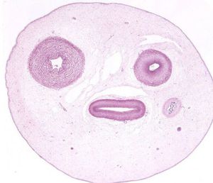 This is the umblical cord... As the left and right placental arteries as well as tge left vein and the allantois embedded in Wharton's jelly is expressed boldly