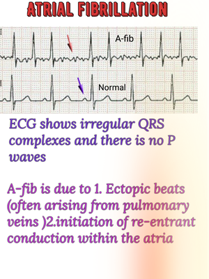 Causes of a-fib ::::: Valvular heart disease Acute MI Hyperthyroidism Congestive heart disease High BP Cardiomyopathy Sinoatrial disease Pulmonary embolism Pericardial disease