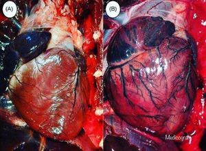 So here is the picture which depicts the difference between normal Heart and Cardiomegalic heart. A. Normal Heart size. B. Enlarged Heart (Cardiomegaly).