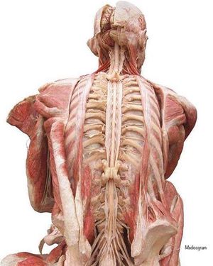 Incredible Posterior view of human body Showing human's nervous system, the brain, spinal cord, cauda equina, spinal nerves and the lumbar plexus.