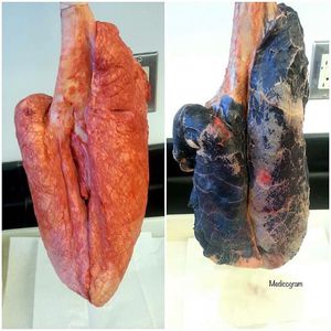 Healthy lungs in contrast to a chronic Smoker's lungs.