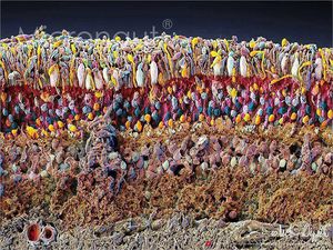 This Shot depicts the seamless integration between technology and life.Look at this beautiful electron micrograph of the human retina and be amazed how many different cells and structures are involved to enable you to see properly! :) A complex network of regulating neuronal pathways process the input signal that you receive from your rods and cones and lead them towards your brain, where the neuronal information gets interpreted and you experience a full HD vision of your environment.Found on micronaut.ch