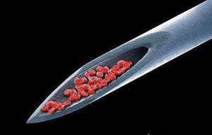 Mindblowing electron micrograph of blood (Erythrocytes) inside a micro needle.