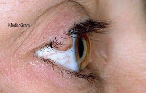 An eyelid papilloma is any lesion on the eyelid that is papillomatous, that is, of smooth, rounded, or pedunculated elevation.The lesion that most commonly fits this description is a benign squamous papilloma. However, it is possible that other benign eyelid lesions may take on the same appearance, as well as malignant skin lesions, especially squamous carcinoma.