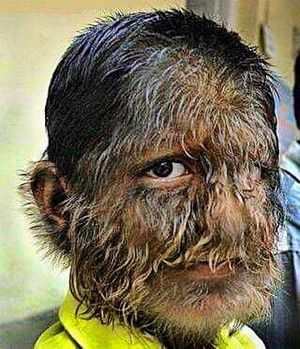 Hypertrichosis is a condition that is characterized by excessive hair growth over the body. The two distinct types of hypertrichosis are generalized hypertrichosis, which occurs over the entire body, and localized hypertrichosis, which is restricted to a certain area. Hypertrichosis can be either congenital (present at birth) or acquired later in life. The condition is always found in males because the trait is Y-linked and son always gets it from father. Hypertrichosis disease is also known as “Werewolf Syndrome”. The presence of coarse pigmented hair on the face and chest in a female is called hirsutism. It is due to hyperandrogenism.