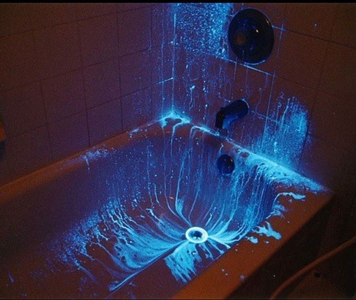Luminol is a chemical that can be used to show trace amounts of blood by creating a light producing chemical reaction when mixed with hemoglobin. Luminol powder is mixed into a liquid containing hydrogen peroxide and other chemicals. This mixture will then be sprayed over the area that is being examined. The reaction of the Luminol spray mixing with the iron in blood will then produce a blue glow that can be seen in a dark room. Other substances that can accidentally have the same reaction with Luminol are: bleach, urine, faeces horseradish. Unfortunately Luminol can destroy other crime scene evidence so it is usually used after other options have been explored.