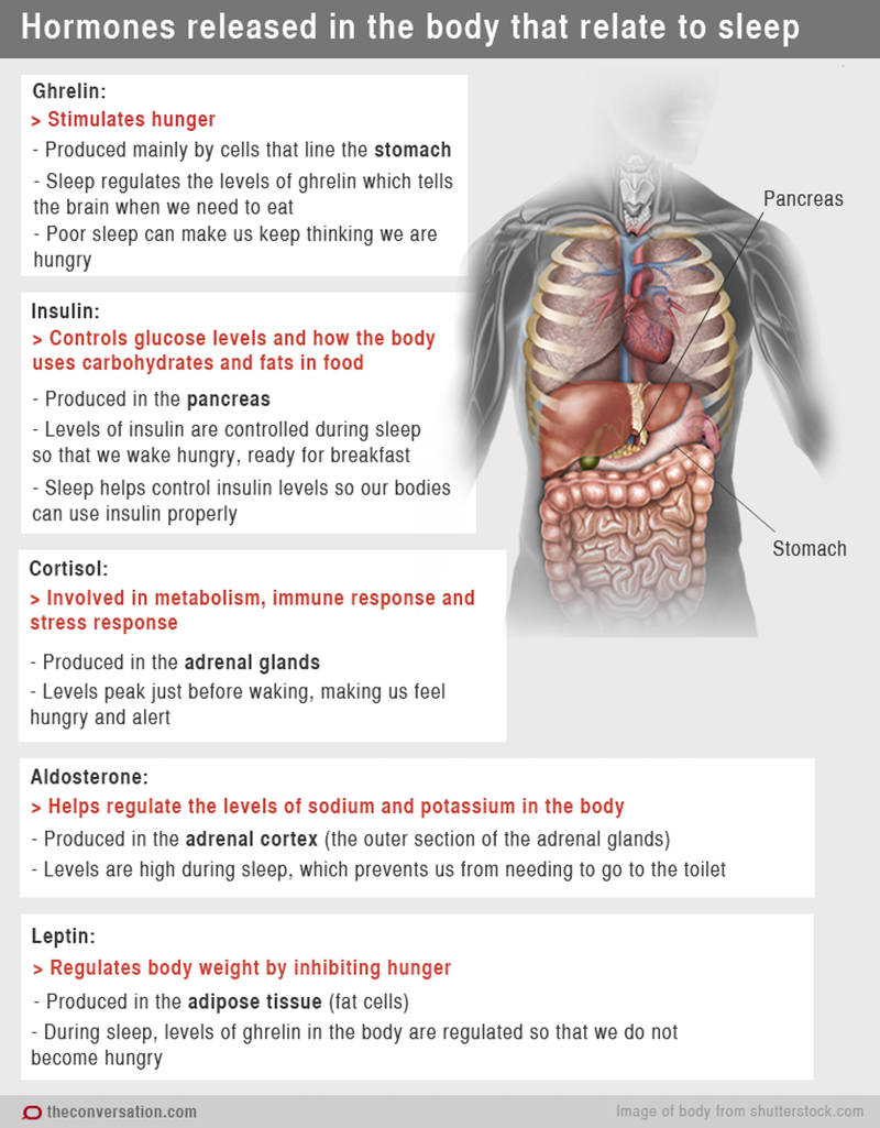 Hormones released in the body related to sleep