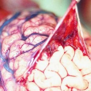 Great shot of a retracted arachnoid membrane from the underlying brain cortex.