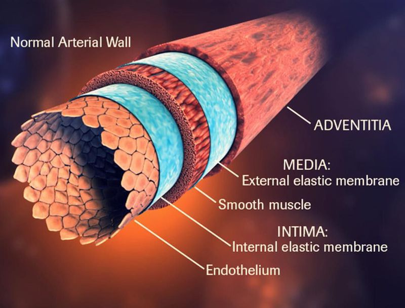 Arteries are the blood vessels that deliver oxygen-rich blood from the heart to the tissues of the body. Each artery is a muscular tube lined by smooth tissue and has three layers:1.The intima, the inner layer lined by a smooth tissue called endothelium.2.The media, a layer of muscle that lets arteries handle the high pressures from the heart.3.The adventitia, connective tissue anchoring arteries to nearby tissues.The largest artery is the aorta, the main high-pressure pipeline connected to the heart's left ventricle. The aorta branches into a network of smaller arteries that extend throughout the body. The arteries' smaller branches are called arterioles and capillaries. The pulmonary arteries carry oxygen-poor blood from the heart to the lungs under low pressure, making these arteries unique.