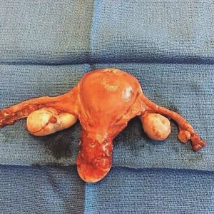 Amazing picture showing female organs; ovaries, fallopian tubes, and uterus.