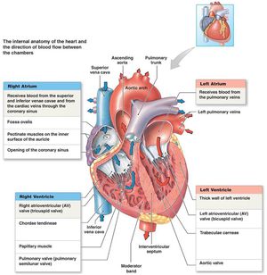 Amazing diagram shows the anatomy of the heart, the internal structures and their functions, and the direction of the blood flow.