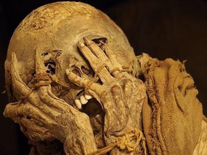 A naturally preserved inca mummy (c.1500 A.D) discovered on a remote cliff in northern peru.Photo by drlindseyfitzharris