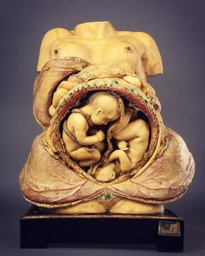 Inside-out! Here is a waxy model from the 18th century shows the inside of a pregnant woman with the upper layers of the abdomen dissected and reflected.Courtesy to Javier Puerta Museum, by drlindseyfitzharris