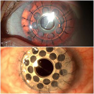 These images show different patients have gone through an eye procedure called keratoprosthesis.Keratoprosthesis is the surgical replacement of the cornea. The surgery is performed to restore vision in patients suffering from severely damaged cornea due to congenital birth, infections, injuries and burns.