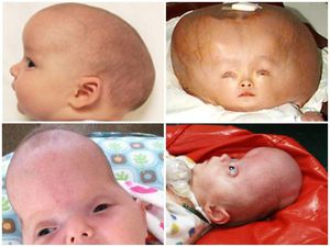 Pictures showing babies suffering from a disease called Craniosynostosis.Craniosynostosis is a birth defect in which one or more of the joints between the bones of your baby's skull close prematurely, before baby's brain is fully formed. When the baby has craniosynostosis, his or her brain can't grow in its natural shape and the head is misshapen.