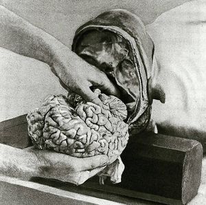 This is an illustration that was done in 1905 that shows how to remove the brain during postmortem examination.Curtesy to H.W. Cattell, by drlindseyfitzharris