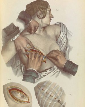 This illustration demonstrates a mastectomy (Removal of breast) from 1841. Back then there was no anesthesia, nor antibiotics. Thus, the operation was painful and dangerous.Courtesy to J.M. Bourgey, by drlindseyfitzharris