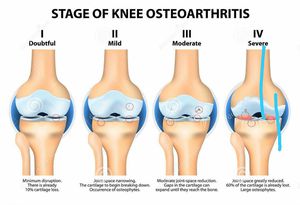 Osteoarthritis is a degenrative joint disease, it is the most common chronic arthritis of the joint. The causes of arthritis could be obesity, injury to the joint or even genetic. It also can be secondary to other diseases such as rheumatoid arthritis or hemochromatosis. The most common symptoms of OA are stiffness of the joint early in the morning and pain. Treatment is by medication for stages 1-3, stage 4 is an indication for knee replacement or surgery.