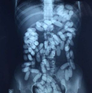 Well well, We have kind of seen something similar to what this X-Ray shows, but some are fake! This is my friends one case reported from the airport of 20 year old guy smuggling drugs in capsules by keeping them in his gastrointestinal tract!, but for sure he got caught and was transferred to the section I was in. It was an interesting case to see and thought you wouldn't wanna miss it too!
